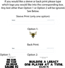 If you would like a sleeve or back print please type which logo you would like into the corresponding box. Any text other than Option 1 or Option 2 will be ignored. See Below.