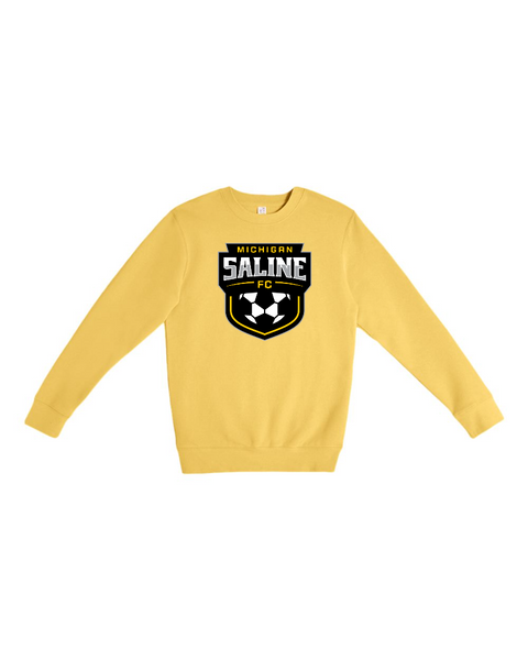 Stay warm while showing your Saline pride with the Crest Crewneck, featuring the official club crest on the chest. Made from 8.5-ounce, 80/20 ring spun cotton/poly for soft comfort and lasting durability. Athletic Heather option is a 75/25 ring spun cotton/poly blend. Perfect for cool evenings and game days. *YOUTH GOLD CREWNECK FLEECE IS NOT AVAILABLE